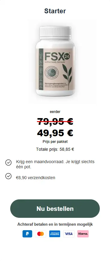 Heel eenvoudig! Bezoek gewoon de officiële FSX24-website en kies het pakket dat het beste bij je past. Bestel je vandaag, dan profiteer je ook van speciale aanbiedingen en gratis verzending bij geselecteerde pakketten.